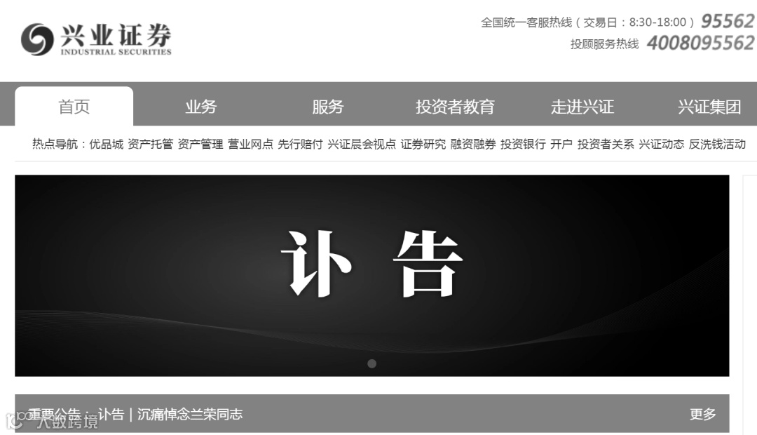 目前,兴业证券官网、微信公众号等官方平台均已转为黑白色调,向兰荣致哀。兴业证券员工纷纷表示缅怀,永远怀念、永远感恩。