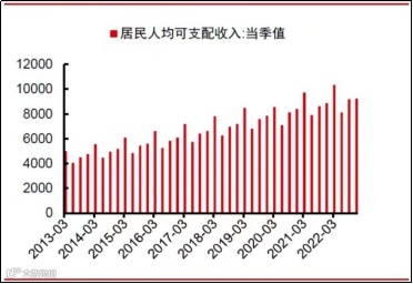 近十年居民人均可支配收入走势图