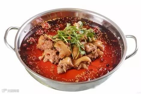 1.猪蹄剁成块儿焯水备用。锅中下油,油烧热后下姜蒜和干辣椒、花椒炒出香味,下入猪蹄同炒。加入十三香、盐、油辣椒继续翻炒。