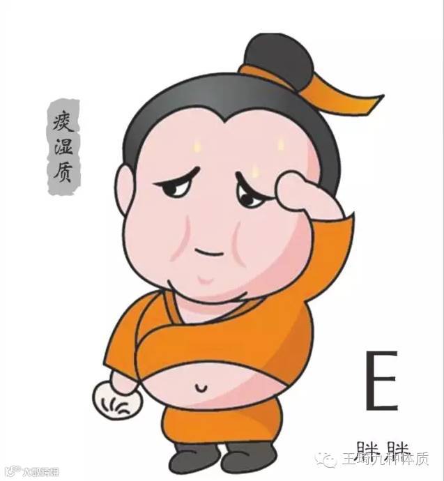 最大特征是肥胖,胖乎乎的,舌苔很厚,四肢很沉重。肥胖了就不爱运动不动弹,这种就是痰湿体质。