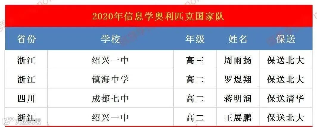 IOI2020四名国家队队员