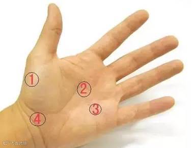 1、心脏区:在拇指跟下面,大鱼际上。