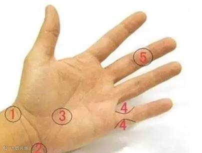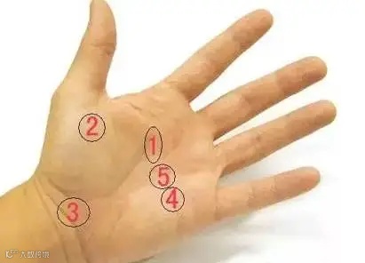 1、鱼际穴:大鱼际中间点,靠近骨头的位置。