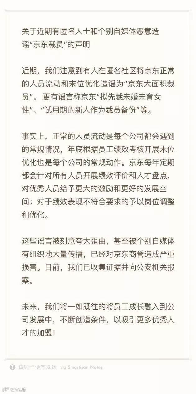 3.京东回应大面积裁员:正常人员流动,已报案