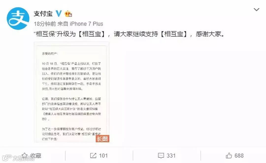 5.合作方涉嫌违规,支付宝宣布“相互保”升级为“相互宝”