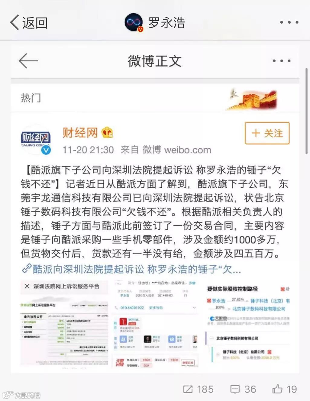 2.罗永浩回应酷派子公司起诉:正协商解决会妥善处理