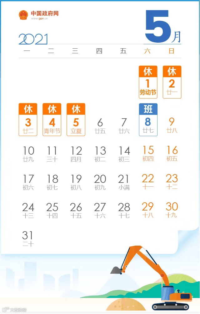 1.放假时间:5月1日(星期六)至5月5日(星期三)放假 ,共5天。