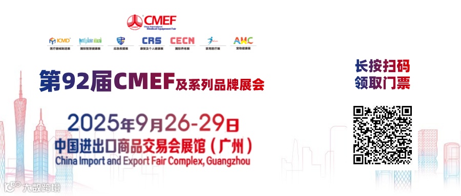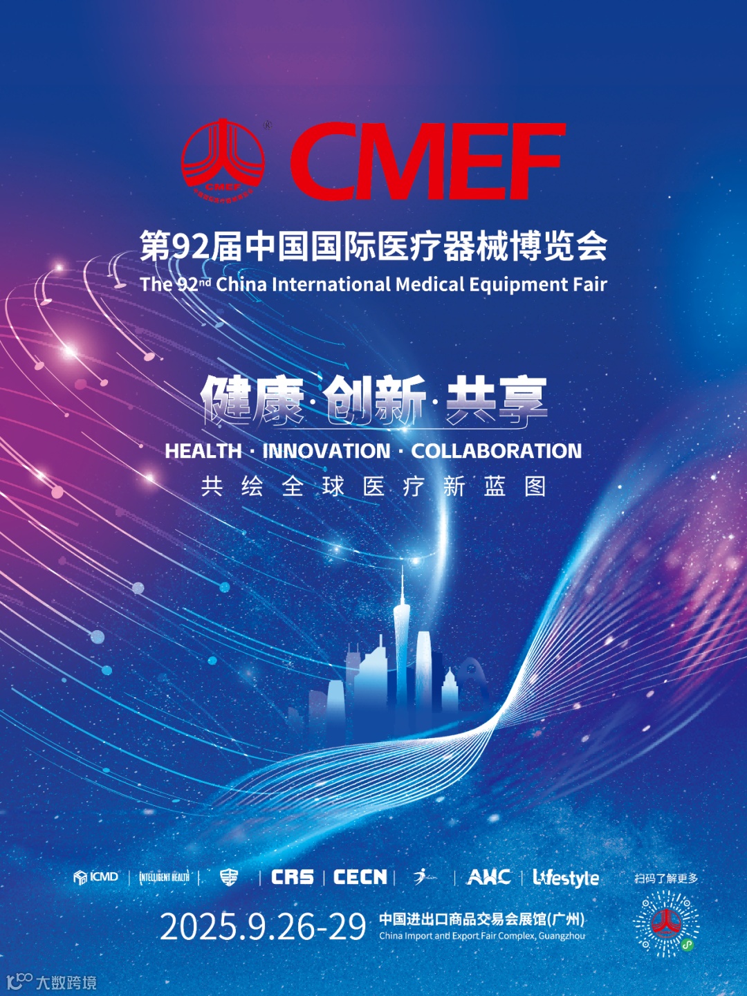 2025年9月26-29日,第92届中国国际医疗器械博览会(CMEF)将在广州·广交会展馆盛大启幕。作为全球医疗健康产业的"风向标",这场汇聚近4000家企业、覆盖近20万平米展区的行业盛会,不仅有全品类医疗产品亮相,更以近70场高规格会议论坛赋能。