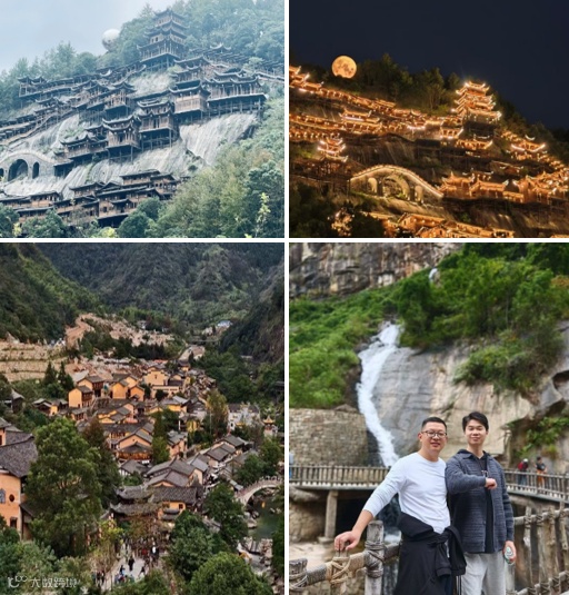而当夜幕降临,望仙谷则换上了另一副迷人的面貌。整个山谷被灯光点亮,瞬间变成了一个梦幻般的仙侠世界。悬崖上的民宿灯火通明,与山下的街市相互映衬,形成了一幅璀璨夺目的画卷。