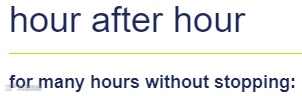 这个表达的字面意思,翻译过来就是“小时之后的小时”,其实也就是“一个小时连着一个小时”;