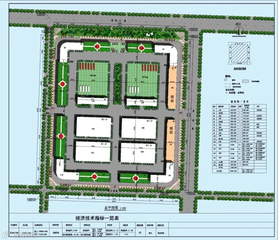 总平面综合布置了物流仓库、综合楼、物业及设备用房、门卫及公共卫生间,垃圾房、停车场、自行车及电动助力车棚、装卸货场地、行车及人行道、绿化设施等,合理规划行车流线,满足物流日常运营的各种功能需求。