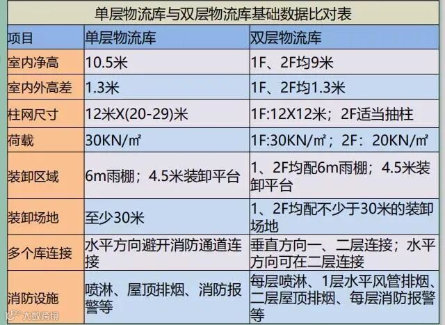 目前,许多通用物流仓库设计标准主要以普洛斯及安博等物流园的设计标准为基础,其他开发商再根据自身的成本控制、战略客户需求、企业特色等方面进行局部修订而成,基本具备如下共同特点。