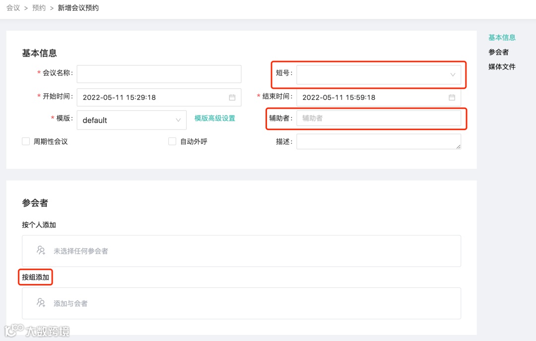 我们还在预约会议中增加了辅助者和短号功能: