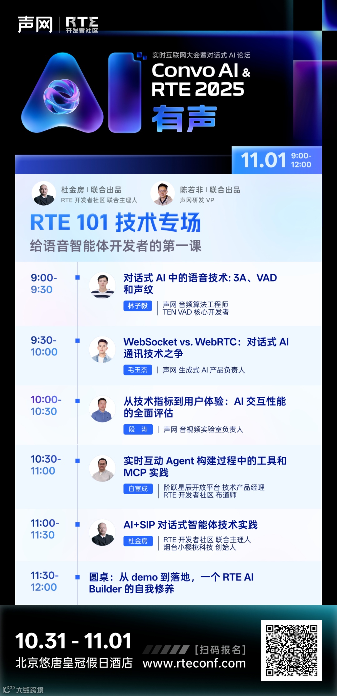 更多关于Convo AI&RTE2025 「实时互联网大会暨对话式 AI 论坛」大会内容可点击左下角