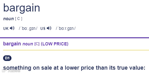 “便宜货;廉价货”,但它并不表示商品的质量很差,有时候也可以买到物美价廉的商品。
