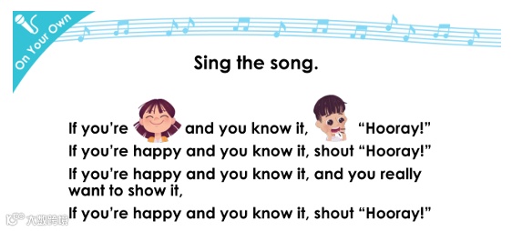 呈现歌词,再听歌曲,试唱表演