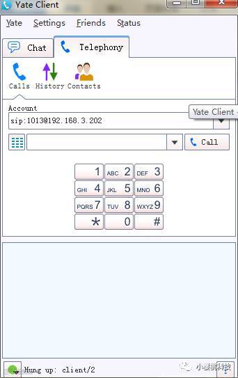 Yate其实包含服务端和客户端,它是开源的,支持Window、Linux、Mac OS X。功能较为简单,不支持视频,界面如下: