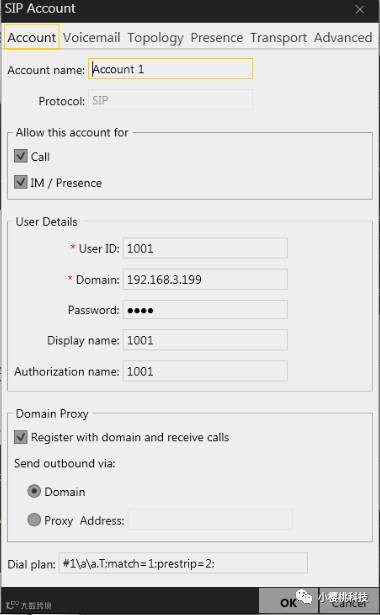 X-Lite的界面在大部分的SIP客户端中算是不错的,画面简洁并且可以改变你的在线状态,支持音视频、耳机模式、短信聊天、会议通话等功能,美中不足的是,一次只能建立一个账号。创建账号过程: