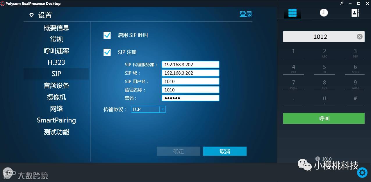 点击右下角设置即可出现注册界面,输入IP地址,号码等点击确定即可(验证名称一定要输入哦!)