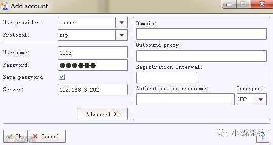 创建账号:点击“文件”→选择“新建账号”→选择“sip”