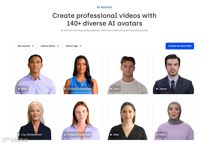 技术方面,Synthesia提供140多个真人AI头像,包括亚洲、欧洲、北美、非洲等人种,提供年龄、着装、用途三大类选择,用户在生成视频时,直接选择AI头像即可。这些AI头像都是找真人付费拍摄,所以,用户无需担心商业版权问题。