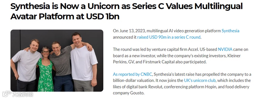 ChatGPT带起的全球生成式AI风口,使得Synthesia这样蛰伏了6年时间的老玩家迎来高光时刻获得资本押注的巨额资金成为行业独角兽。