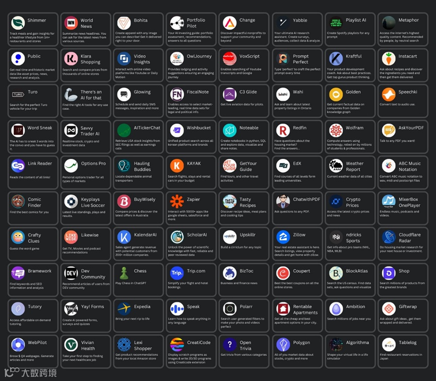 ChatGPT首次上线70个插件之后,目前已增加至86个,涵盖学习、工作、生活、娱乐、投资、购物、房产等各个领域,可以帮助用户将效率提升数倍以上。