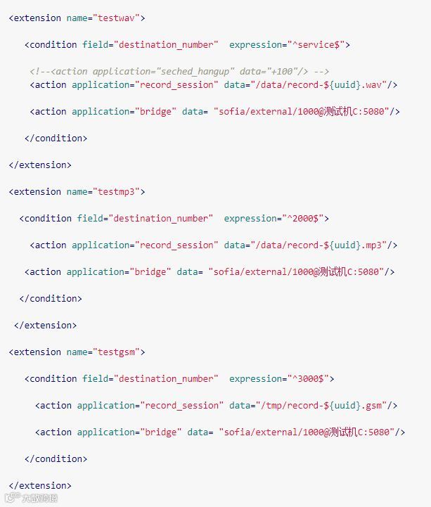 仅做录音,在dialplan/public.xml中写入以下配置