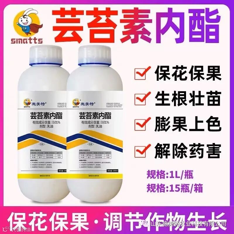 芸苔素内酯能够提升作物抗逆能力,改良作物品质,让果实均匀亮丽,甜度增加,芸苔素内酯还能够有助营养分配,有助光合产物向果实或籽粒运输,有利于增加作物产量和品质。