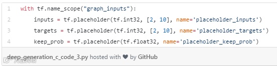 批次由两个大小为 10 的输入组成,因此我们输入的形状大小为 [2,10],这个批次的每个 entry 与单个输出相关联,可以将我们的目标也定义为相同的形状。最后,我们定义一个占位符,用于将来 dropout 概率的值。
