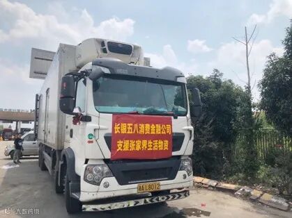 (装载长银五八消费金融捐赠物资的运输车即将发车)