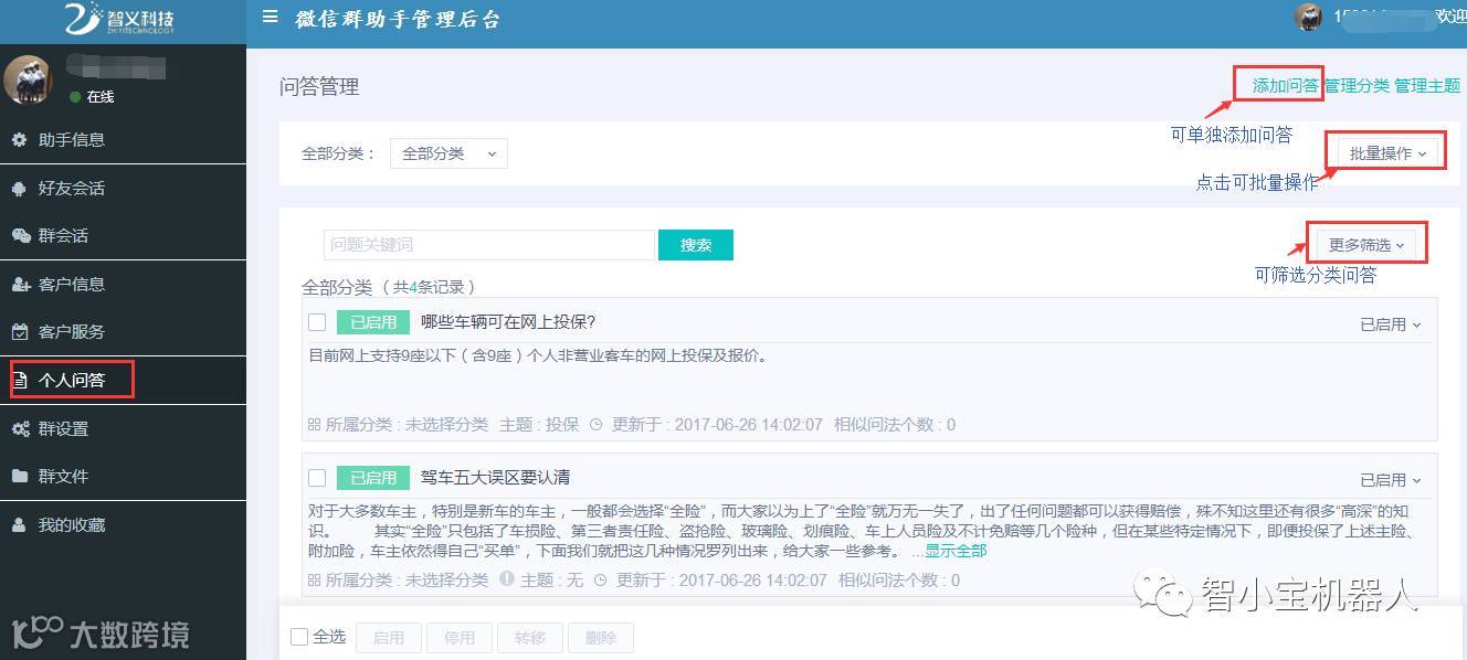 您可以根据您的业务需求设定个人专属的专业问答服务,可以批量导入专业的问答。