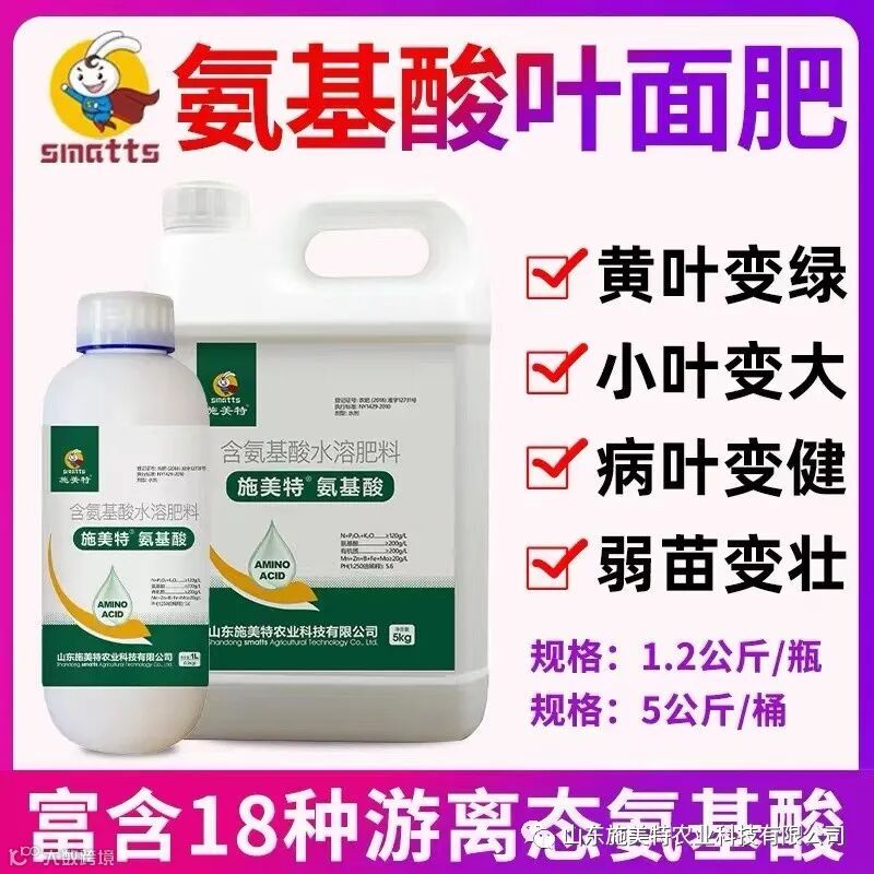 (2)均衡营养:氨基酸肥料富含有益菌、氨基酸、微量元素等营养成分,其中的微量元素(比如锌、钼、铜、铁、锰、硼等)以螯合态存在,可让作物有效吸收利用。氨基酸肥料养分均衡,配方合理,能满足作物在不同时期对养分的需求。