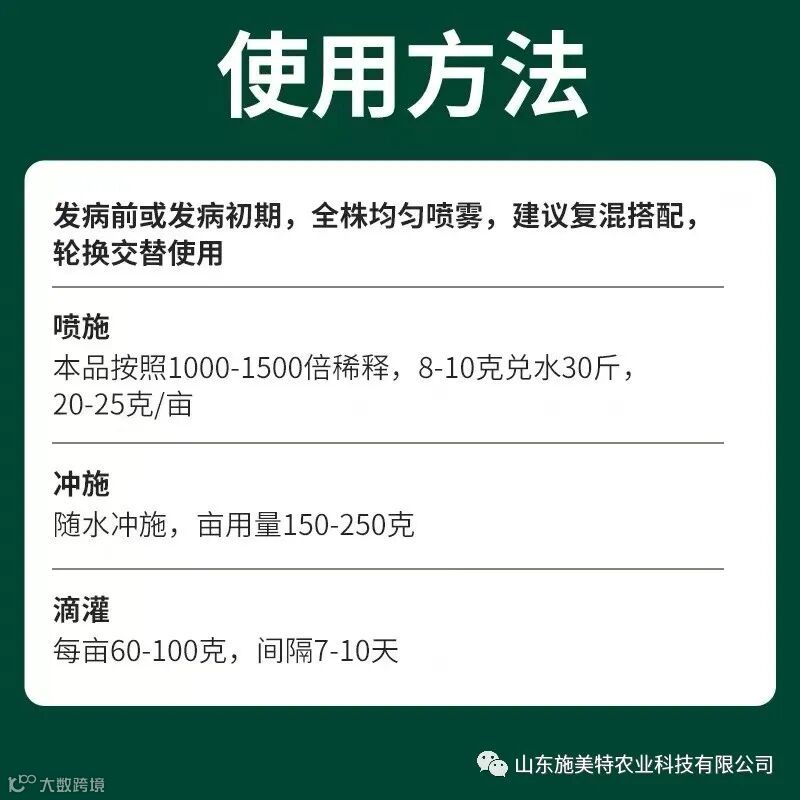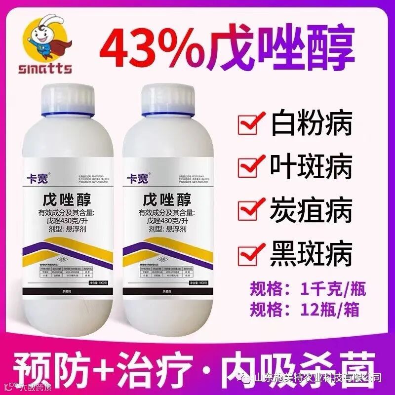 适用范围 戊唑醇主要用于小麦、水稻、花生、大豆、黄瓜、马铃薯、西瓜、甜瓜、番茄、茄子、辣椒、大蒜、大葱、白菜、甘蓝、花椰菜、香蕉、苹果、梨、桃、猕猴桃、葡萄、柑橘、芒果、荔枝、龙眼等以及玉米高粱等作物,在全球50多个国家的60多种作物上取得登记并广泛应用。是目前使用范围最广的杀菌剂。 防治对象 戊唑醇可用于防治白粉病、锈病、黑穗病、腥黑穗病、赤霉病、炭疽病、蔓枯病、纹枯病、立枯病、根腐病、叶斑病、黑斑病、褐斑病、轮纹病、落叶病、网斑病、稻瘟病、稻曲病、黑痘病、茎基腐病等几十种病害。 主要特点 (1)杀菌谱广:戊唑醇可用于防治由白粉菌属、枘锈菌属、喙孢属、核腔菌属和壳针孢属菌引起的病害锈病、白粉病、赤霉病、褐斑病、纹枯病、根腐病等几十种病害,都具有很好的保护、治疗和铲除作用。 (2)治病彻底:戊唑醇为三唑类杀菌剂。主要通过抑制病菌麦角甾醇的生物合成,达到杀灭病菌的作用,对病害具有保护、治疗和铲除作用,治病更彻底。 (3)混配性好:戊唑醇能与大多数杀菌、杀虫剂复配,都具有很好的增效作用,有些配方还是防治病害的经典配方。 (4)使用灵活:戊唑醇具有内吸传导特性,可用于喷雾、拌种等多种使用方法,可根据实际情况,选择适宜的方法。 (5)调节生长:戊唑醇是三唑类杀菌剂,三唑类杀菌剂都有一个共同的特点,可用于调节植物生长,尤其用于拌种,可防治幼苗徒长,使幼苗更加健壮,抗病性强,花芽分化早。 (6)持效期长:戊唑醇由于具有渗透性强,内吸性好,药剂内快速渗透进作物体内,并在体内长时间存在,达到持续杀灭病菌的作用。尤其是土壤处理,持效期可达90天以上,大大减少了施药次数。 使用方法
