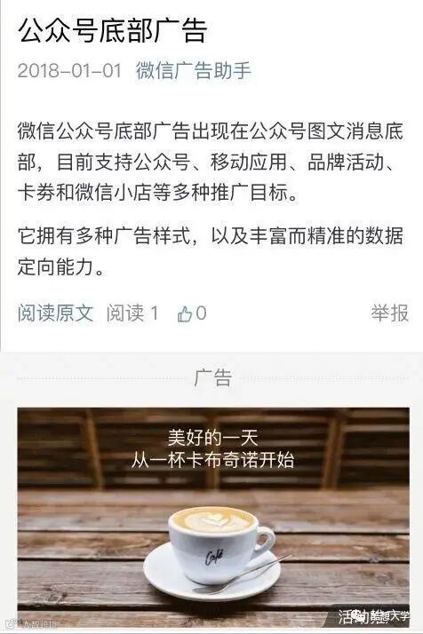 4.微信公众号“底部广告”,可以插入小程序二维码,扫描进入,或插入小程序直接进入
