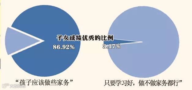 圝圝自理能力强的小学生学习能力也强。当问及“孩子分内的事情总让您帮忙,您会怎么办”时,在成绩优秀的小学生中,“要求孩子自己的事自己做”的比例最高,为43.11%,“有求必应”的比例最低为2.12%。在孩子专门负责一两项家务活的家庭里,孩子成绩优秀的比例也相对较高。 圝圝这样看来,并非把所有的时间都留给孩子学习和休息才是明智的选择。那些认为“只要学习好,做不做家务都行”的家庭中,子女成绩优秀的比例为3.17%,而持有“孩子应该做些家务”观点的家庭中,此比例为86.92%,两者相差悬殊。 |