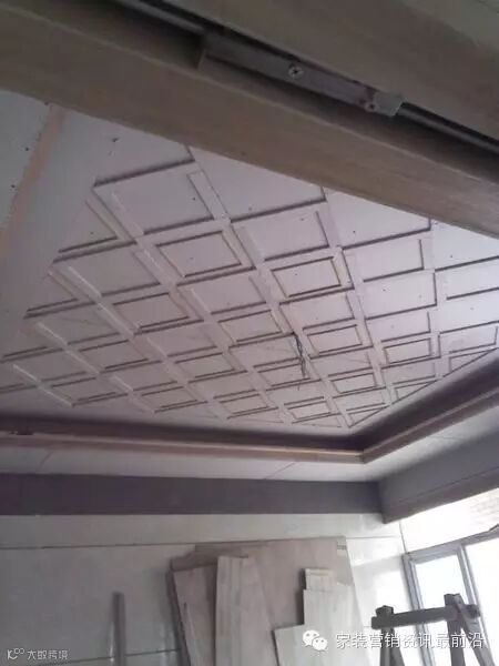 下面平板天花的吊筋还没完全做完,全部算上去不会比平面花的成本少,而成功之后,客户只看到一个白色的顶,与原墙没有任何区别。