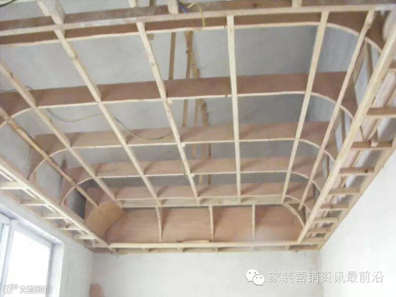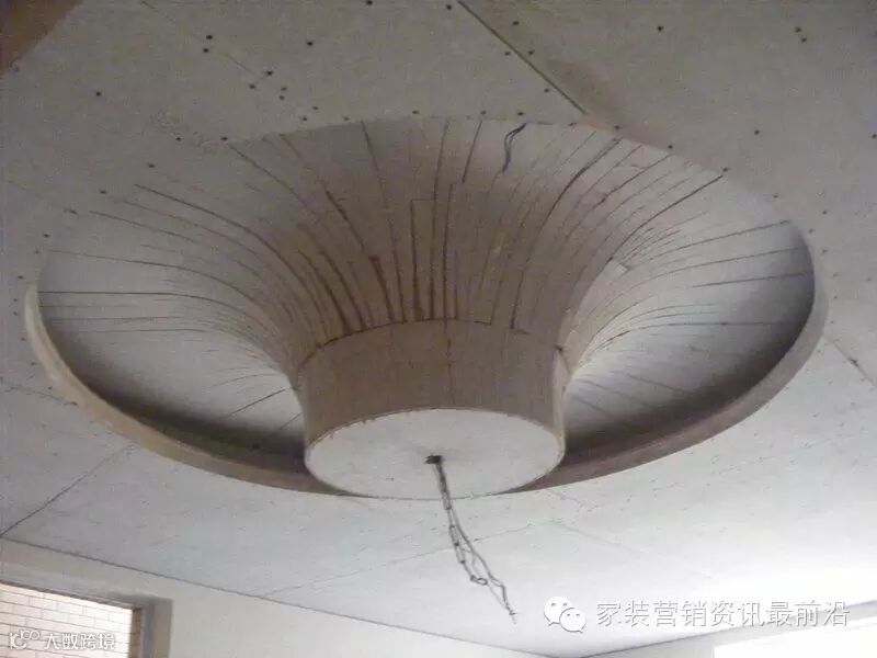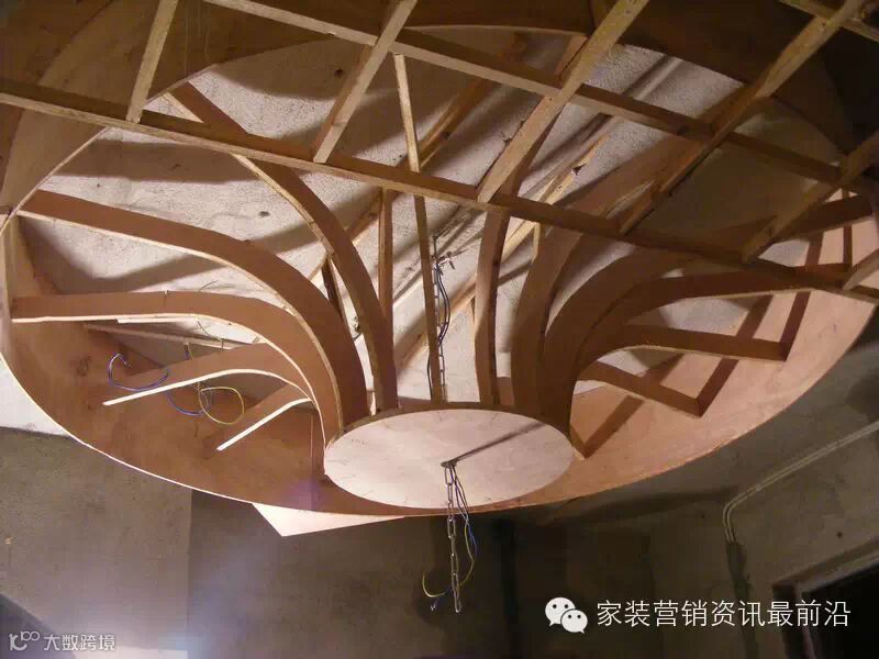 如果只看表面,下面的造型做成功之后就是一个白色的弧型天花而已。但看清了内部结构兴许你会舒服些。无论是用材还是所花的人工都是非常惊人的。