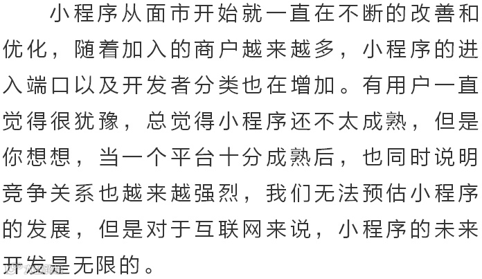 智无忧2019年小程序爆火,虽然越来越多的企业入驻小程序,但小程序对整个行业来说还是相对比较年轻的,还是处于一个上升期,也可以说小程序未来的商机是无限。由于各界人士对小程序的需求不同,这也加大了开发者的开发难度。
