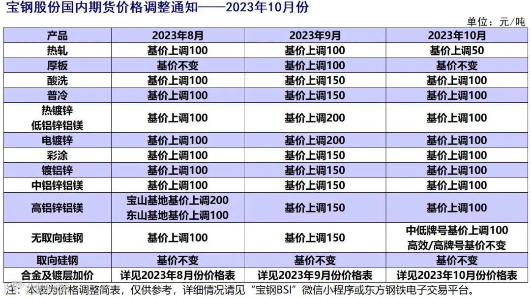 宝钢股份2023年10月价格发布