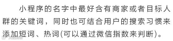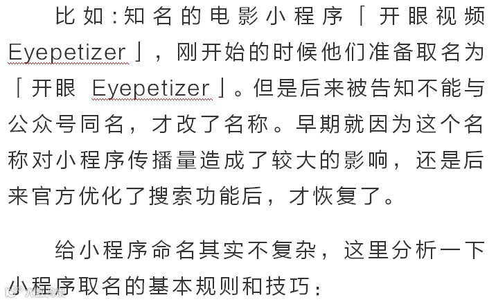 随着小程序越来越多,运营者在给小程序取名时,经常碰到这样的情况:名称字数不合格、不能与公众平台同名、名字被占用……等类似的提示,其实小程序的名称非常重要,如果名字没有起好,那么在起跑线上已经落后于他人。