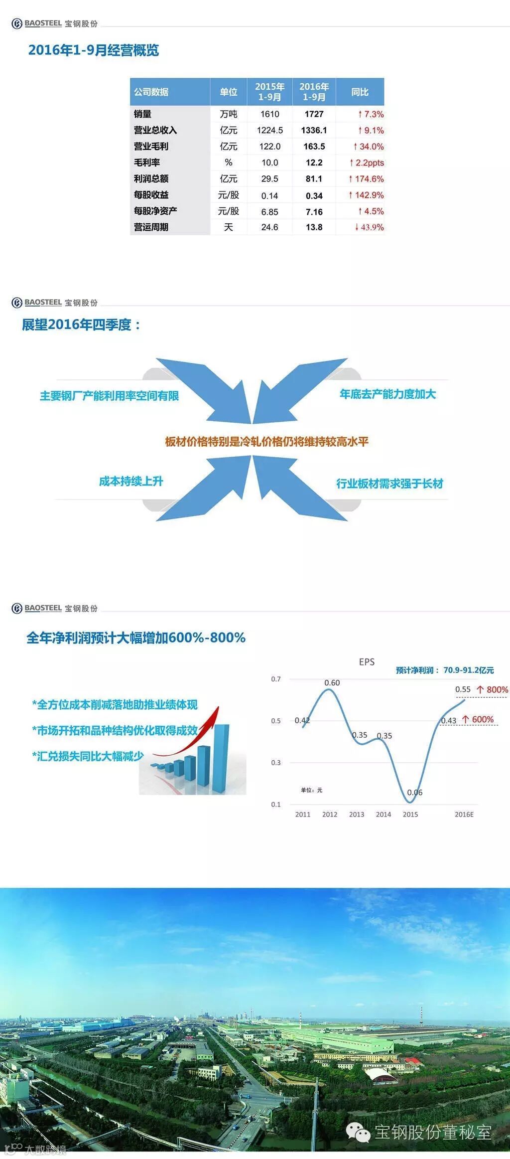 宝钢股份三季度业绩发布