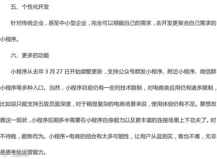 每个时代要做每个时代的事情,8年前,你就应该好好的做微博营销,4年前你就应该好好的做公众号宣传。现在你就应该好好琢磨琢磨小程序了。不要停留在原来的思维,还在想怎么做个 app,怎么去运营自己的公众号了,那个时代已经过去了。赶紧开发小程序吧!
