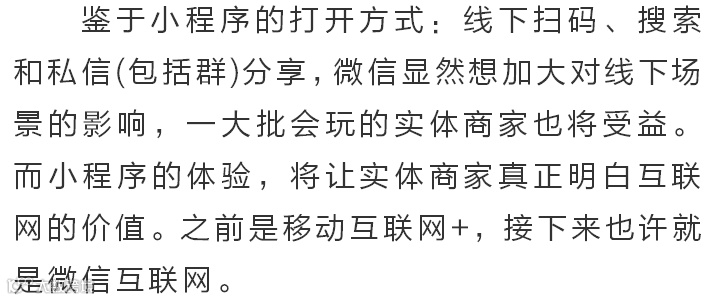 微信再大,也仅仅是一个APP而已,何况归根结底,消费者要消费的不是小程序,而是小程序所承载的商品与服务。