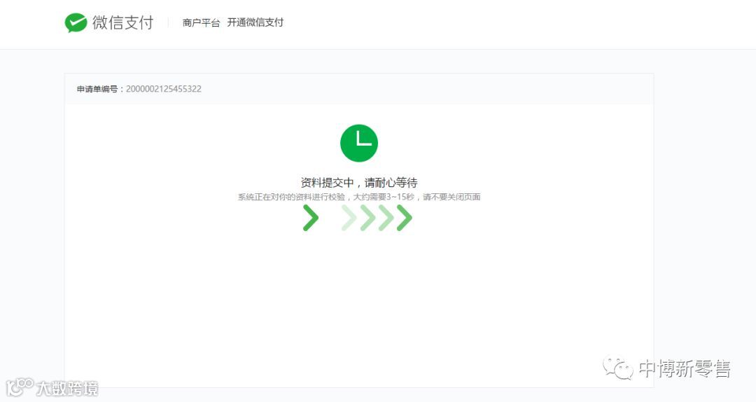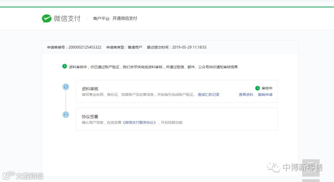 校验完成,资料进行审核,微信支付会在1~2个工作日内完成资料审核