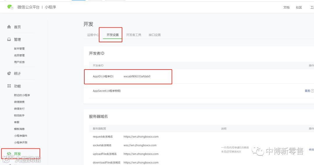 图中所需的小程序APPID,登录小程序公众平台,截图处复制