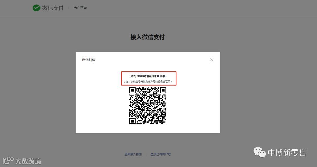 1.访问微信支付商户平台(pay.weixin.qq.com),使用申请单的超级管理员微信扫码登录。