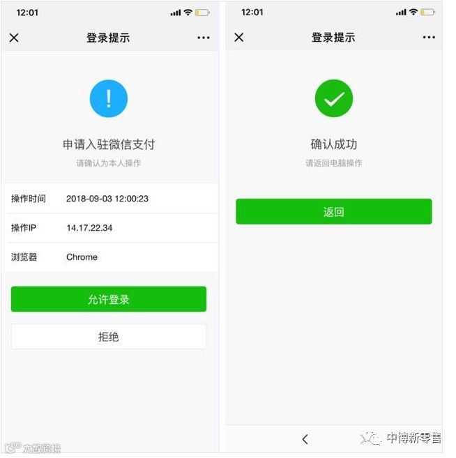 3、手机微信扫码后:登录确认消息会发送到对应微信上,请点击“允许登录”