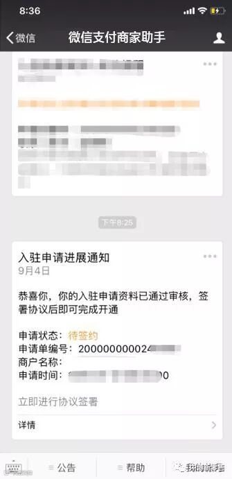 1、审核通过后,待签约模版消息会通过“微信支付商家助手”公众号推送给超级管理员。如图:
