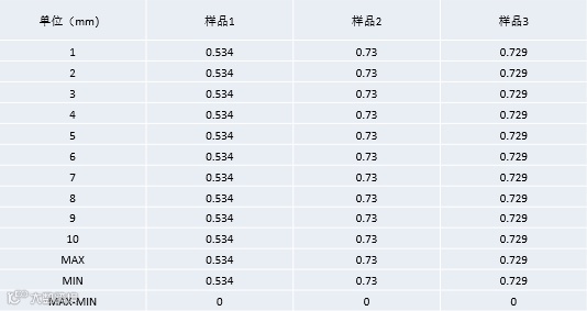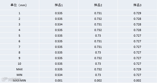 数据说明:10次静态测量,厚度重复性为0.00mm;由于激光打透玻璃时有折射影响,厚度最终结果需乘上折射率。